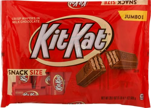 - Contains one (1) 20.1-ounce jumbo bag of KIT KAT Milk Chocolate Wafer Snack Size Candy Bars