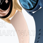 Three smartwatches with round faces in gold, blue, and black colors. Text 'AGPTEK SMART WATCH' visible in the image.